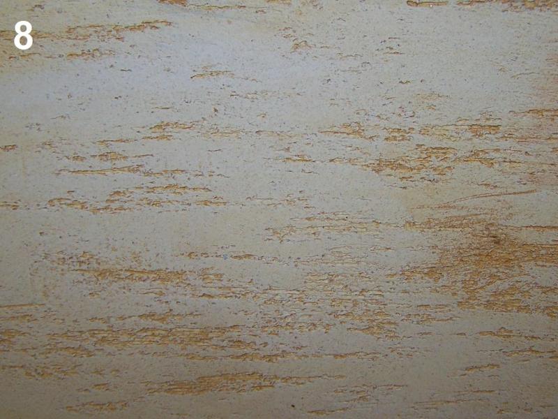 Chcąc uzyskać kolorowe efekty trawertynu , powierzchnię przecieramy lakierami,woskami, werniksami w wybranym kolorze, istnieje możliwość nakładania wielu kolorów w celu uzyskania ciekawszych efektów wizualnych